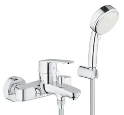 De klassieke lijnen van de GROHE Eurostyle Cosmopolitan wandgemonteerde eengreeps badkraan onderscheiden zich door moderne elementen. Daarom is hij niet alleen geschikt voor klassieke appartementen, bijvoorbeeld als vervanging van een niet-functionele bestaande wandkraan, maar ook als smaakvol variant in moderne, nieuwe appartementen. Bij de kraan hoort ook een doucheset, dat wil zeggen een handdouche met twee waterstralen, een 1.500 mm lange doucheslang en een wanddouchehouder.