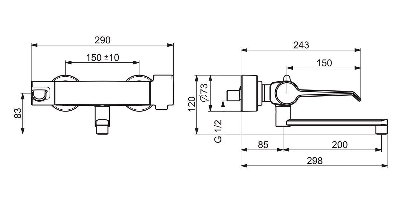 - hartafstand aansluiting: 150 mm
