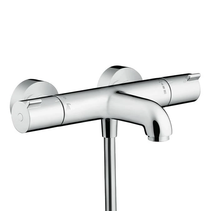 Voeg een ultieme stijl naar je badkamer dankzij deze badmengkraan van hansgrohe. Tijdloze minimalistische lijnen geïnspireerd op de industriële stijl zijn smaakvol aangevuld door ronde rozetten en kleine functionele details. Het strakke ontwerp in de chromen afwerking wekt een luxe gevoel op, maar ook qua functionaliteiten is deze thermostatische badkraan de juiste keuze. De bediening van de kraan is eenvoudig en bijzonder intuïtief. Draai simpelweg aan de hendel om de juiste watertemperatuur in te stellen, terwijl de veiligheidsstop, die standaard op 40°C is ingesteld, je tegen verbranding beschermt. De temperatuur kan echter wel naar eigen voorkeur ingesteld worden.
