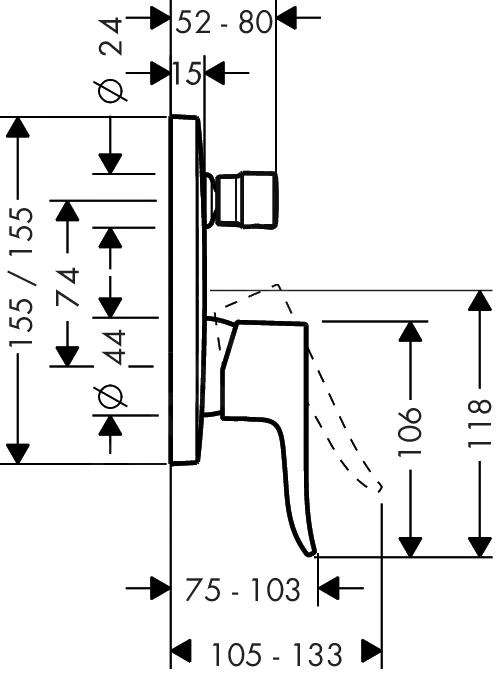Bij de installatie van de Metris 1-greeps badkamerkraan is de basisgarnituur van de kraan geheel in de wand verborgen, dus onder het stucwerk. (Bij de installatie wordt gebruikgemaakt van de iBox universal basisgarnituur voor inbouwinstallatie.) De vakman dekt vervolgens de verborgen technologie af met een set met verchroomde vierkanten met afgeronde hoeken, de 1-greeps kraan en de omsteller. Deze opvallend platte inbouwoplossing ziet er niet alleen geweldig uit, maar is ook ruimtebesparend en geeft bewegingsvrijheid in bad en onder de douche, omdat er geen kranen in de ruimte uitsteken. De Metris kraan is modern vormgegeven en past naadloos in elk badkamerinterieur. Er zijn bijpassende Metris Classic kranen verkrijgbaar voor bidet, bad en douche, waardoor u een harmonisch geheel kunt creëren.
