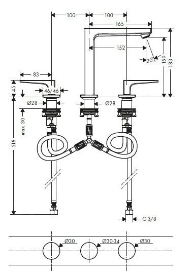 Hansgrohe Metropol – Wastafelmengkraan Met Push-Open Afvoer, 3-gats Installatie, Chroom 74515000