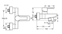 - doorstroming handdouche: 15 l/min (druk 3 bar)