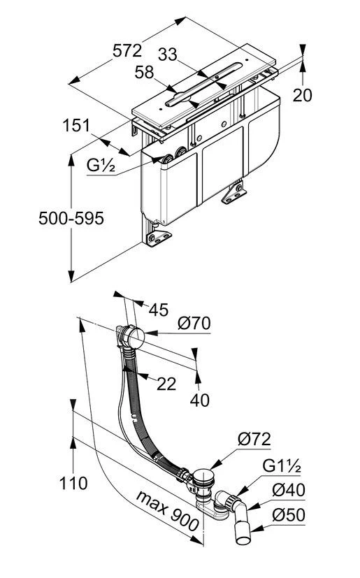 - badvul-, afvoer- en overloopcombinatie G1 1/2