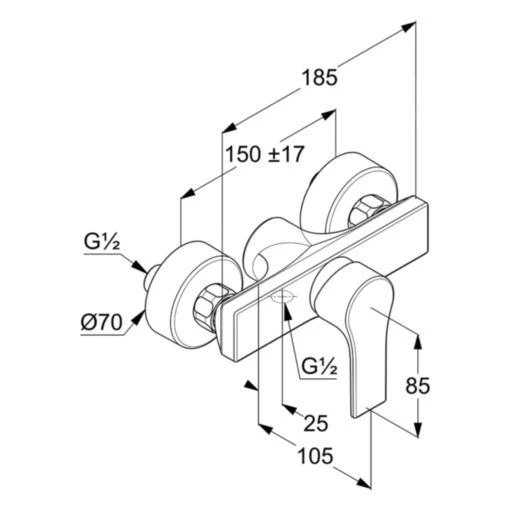 Eengreeps douchemengkraan voor wandmontage, DN 15