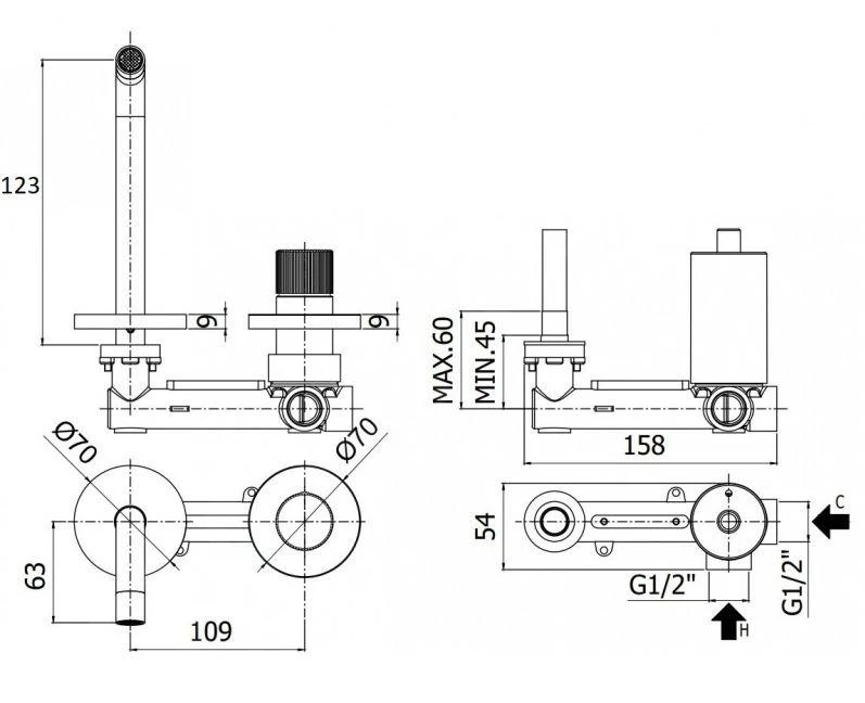 Installatie op inbouwdeel (wordt bij de kraan meegeleverd).