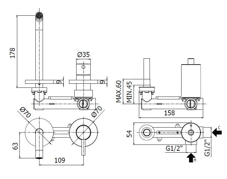 - lengte uitloop 178 mm