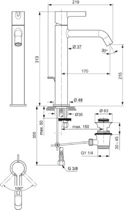Hansgrohe Rebris S – Wastafelkraan Met Afvoer En Draaibare Uitloop, Mat Zwart 72536670