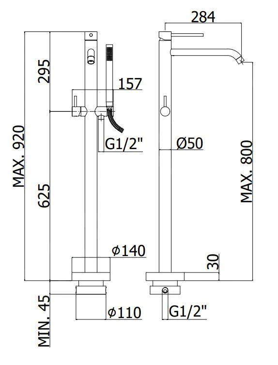 - roestvrijstalen aansluitslangen M 15×1, 650 mm