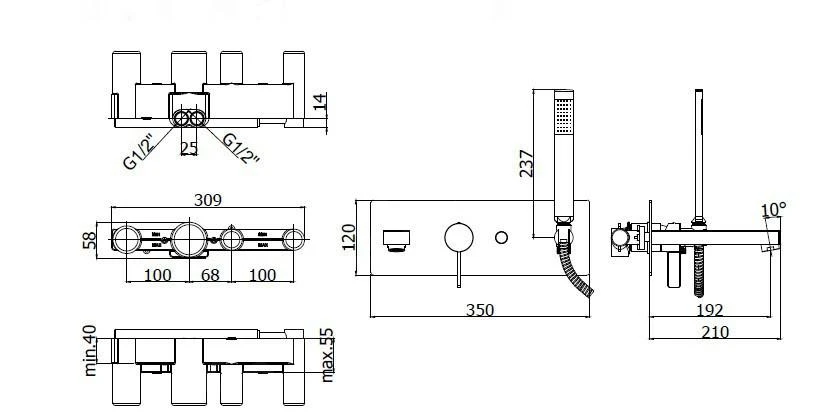 Eengreeps inbouw badkraan met inbouwdeel, incl. doucheset