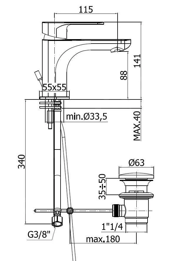Staande eengreeps wastafelkraan met waste